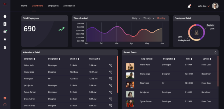 An AI-powered facial recognition platform for secure attendance tracking and access control in organizational environments.